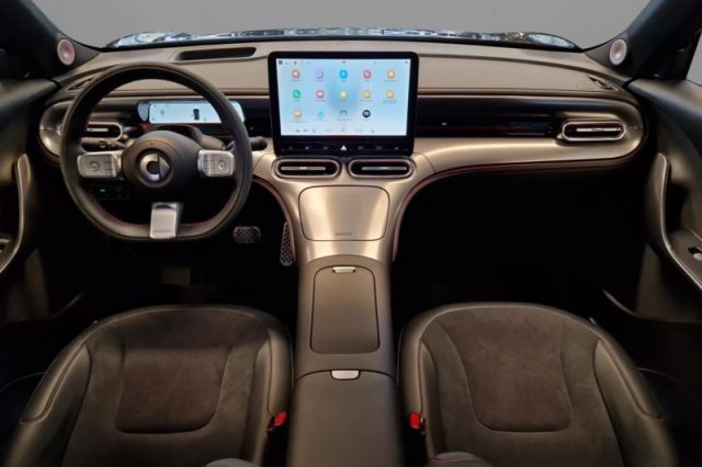 Sistema di qualità dell'aria (AQS), Front Cross Traffic Alert (FCTA), Pinze freno verniciate di rosso, Halo roof - tetto panoramico fisso, Airbag laterali, Head-up display da 10 pollici, Autonomous Emergency Braking, Highway Assist (HWA) con assistente automatico al cambio di corsia (ALCA), Fari follow-me-home, Hill assist, Specchietti retrovisori riscaldati, reg. elettr. con memoria e immersione automatica in retromarcia, Indicatori dinamici anteriori e posteriori, Ricaricatore DC da 150 kW, Ingresso facile (regolazione del sedile), Accesso al carico passante del sedile posteriore, Intelligent Speed Assist (ISA), Volante sportivo in Alcantara, Interni Brabus, Android Auto ed Apple CarPlay con connessione wireless e cablata, ISOFIX con ancoraggio top tether sul sedile del passeggero anteriore, Beats® Soundsystem con 13 speakers, Kit di pronto soccorso, CyberSparks LED con assistenza adattiva abbaglianti, Kit riparazione pneumatici, Modalità di guida - Modalita BRABUS, Lampada cupola fila anteriore: luce di controllo touch, luminosità regolabile, Sedile conducente e passeggero ventilati, Lane Change Assist (LCA), Evasive Manoeuvre Assist (EMA), Lane Departure Prevention (LDP), , Lane Departure Warning (LDW), , Luce ambiente - 64 colori, luminosità e colori regolabili- configurazione alta, , Luci di cortesia - proiezione logo dagli specchi della portiera, , Maniglie posteriori nascoste - elettriche, , Maniglie posteriori nascoste - illuminate, Otturatori griglia attivi (AGS), Pannello strumenti rivestimento in pelle sintetica, Pedali stile sportivo, Pompa di calore, Portabicchieri console centrale, Portaocchiali della console a padiglione, Portellone a comando gestuale (piede-pedale), Portiere frameless, Presa da 12 volt anteriore, Presa da 12 volt nel bagagliaio, Punti di fissaggio ISOFIX e top-tether per seggiolini per bambini nella parte posteriore, Quadro strumenti full HD LCD da 9,2 pollici, Radio digitale DAB, Rear Collision Mitigation (RCM), Rear Cross Traffic Alert (RCTA), Regolazione altezza della cintura di sicurezza, conducente e passeggero anteriore, Regolazione del sedile del passeggero - manuale a sei posizioni, Regolazione volante manuale - quattro posizioni, Ricarica wireless del cellulare, Riscaldamento sedile passeggero: 3 livelli di regolazione, Sedile memory conducente, Sedili in pelle scamosciata in microfibra, Sensori di parcheggio ant/post (12), Sistema antibloccaggio (ABS) con ripartizione el